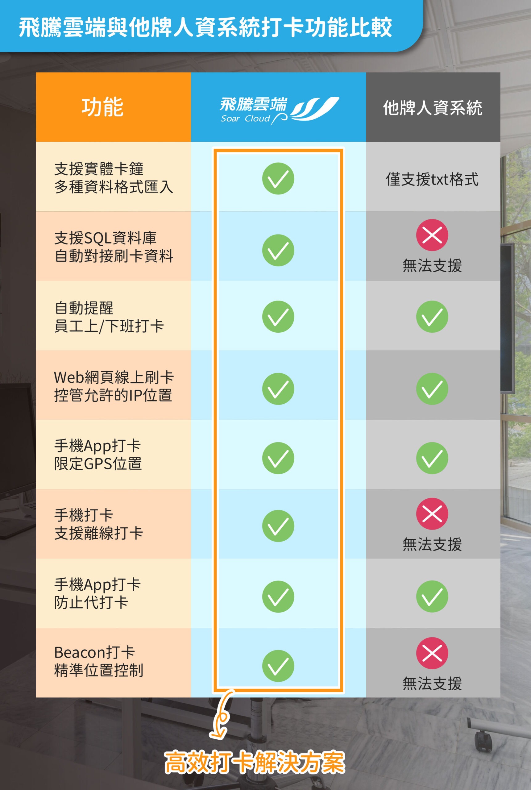 飛騰雲端與他牌人資系統打卡功能比較